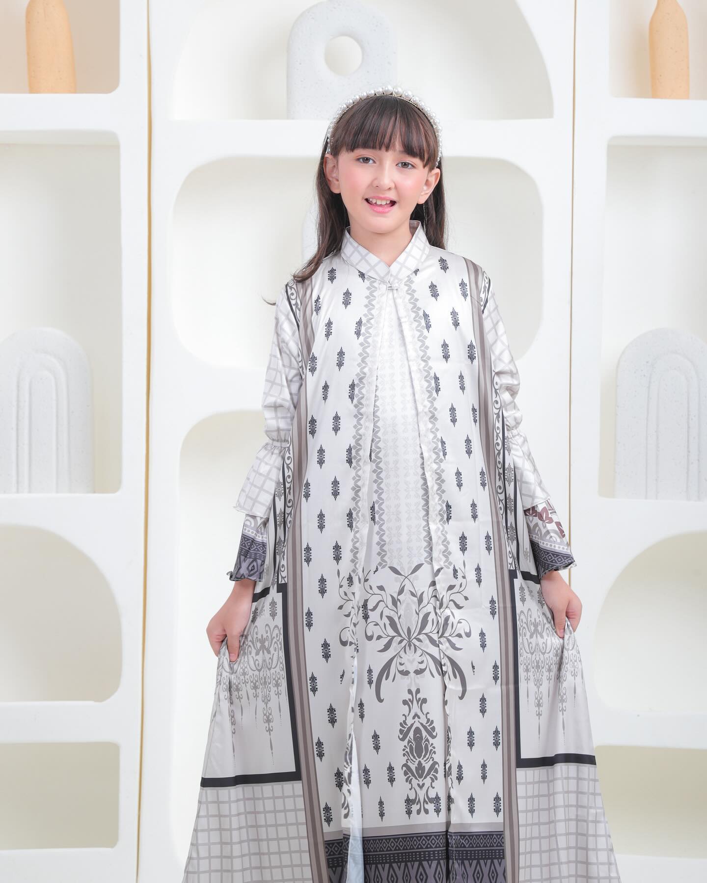 Material Dress & Outer : Luxury silk (karakteristik lembut, halus, menyerap keringat, dan mewah saat digunakan)