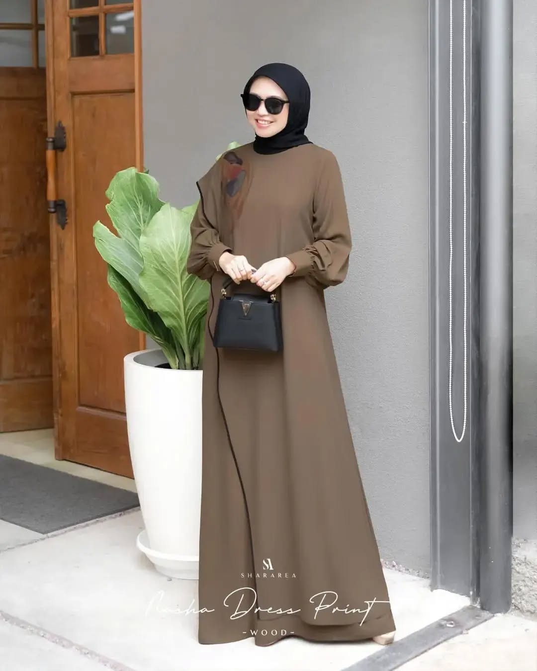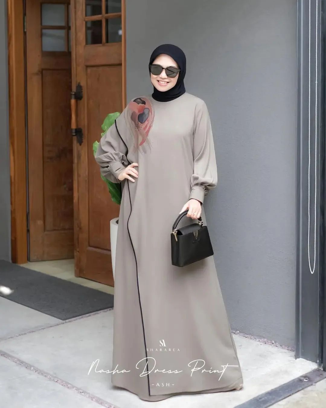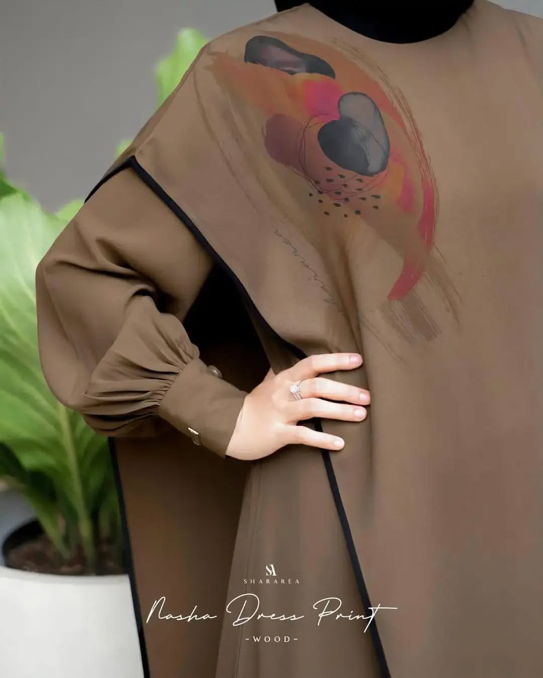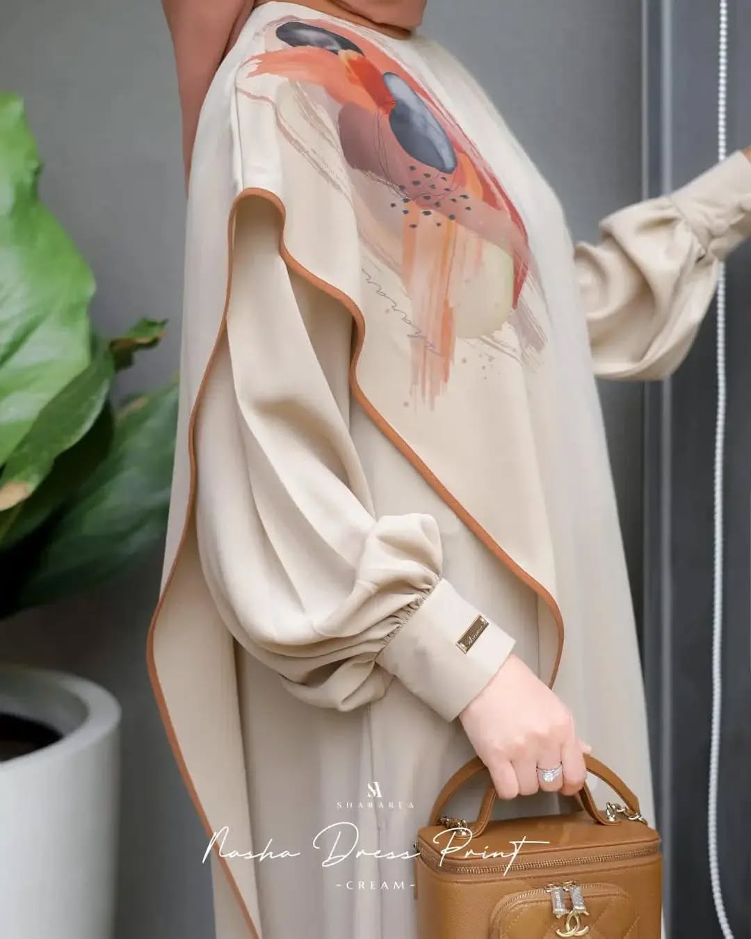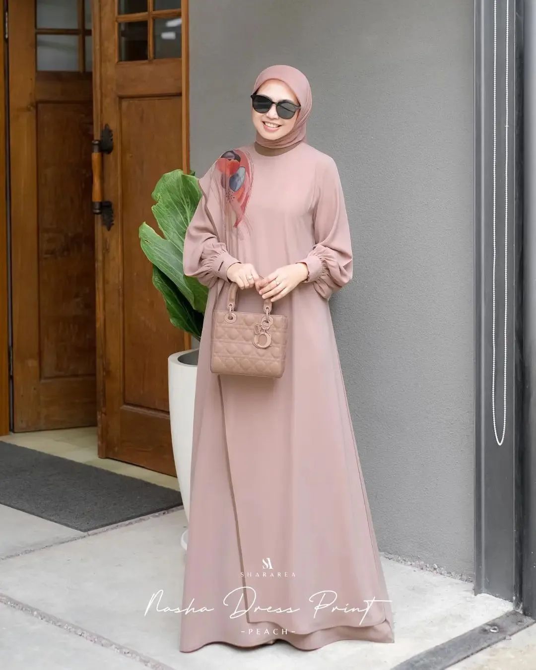 | Nasha Dress Print | Ash, Cream, Peach, Wood |