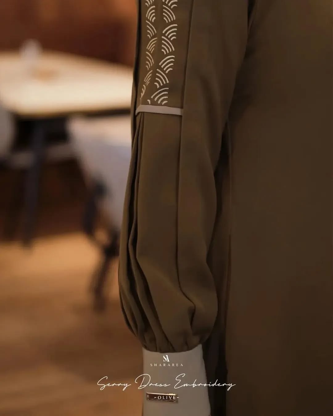 • Pleated sleeves accent